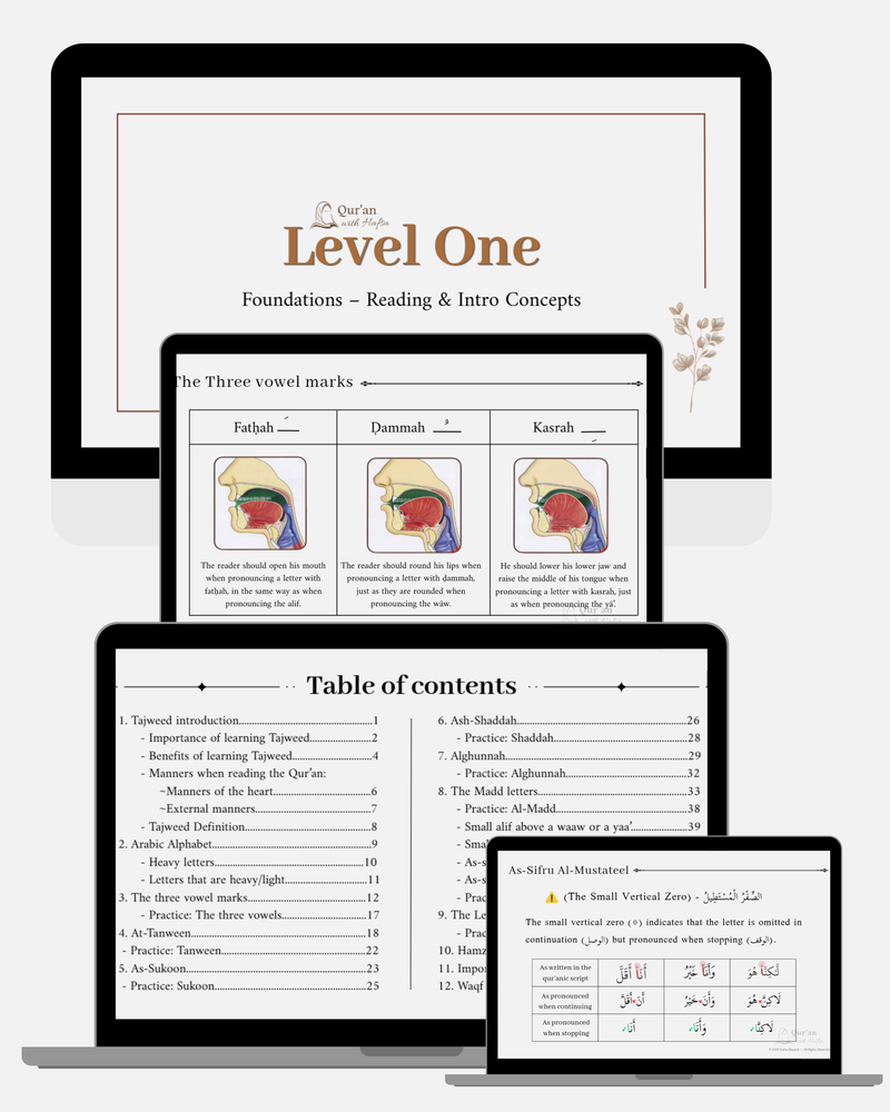 Clear and gradual progression from beginner to confident Qur’an recitation.